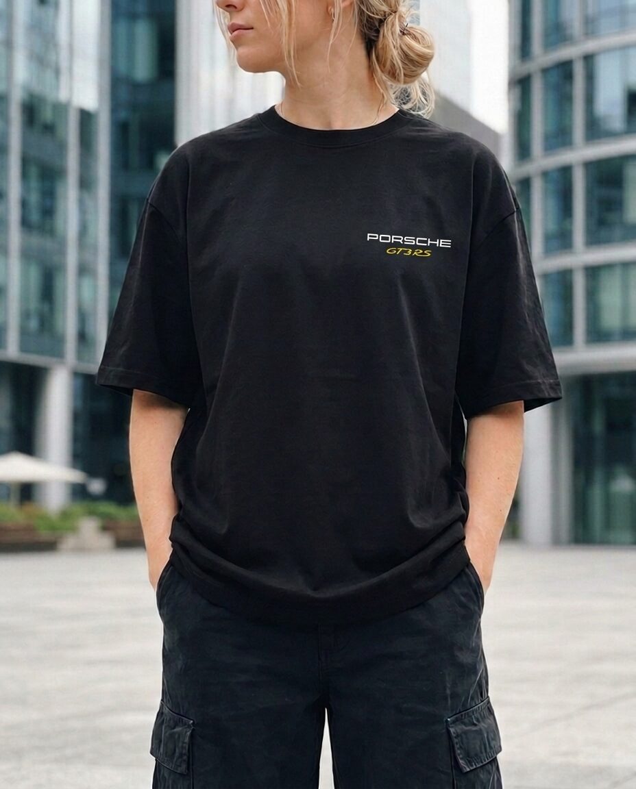 Koszulka z serii CAR SPEC to coś więcej niż zwykły nadruk – to techniczna wizytówka Porsche 911 GT3 RS przeniesiona prosto na ubranie. Projekt łączy grafikę tego torowego potwora z jego pełną specyfikacją, od mocy i rodzaju silnika po szczegółowe osiągi i dane o napędzie. Całość utrzymana jest w surowym, motorsportowym stylu z mocną typografią, nawiązującą do profesjonalnych katalogów performance i klimatu street racingu. To idealna opcja dla osób, które zamiast prostych obrazków cenią techniczne detale i chcą pokazać swoją pasję do konkretnych parametrów tej legendarnej maszyny.