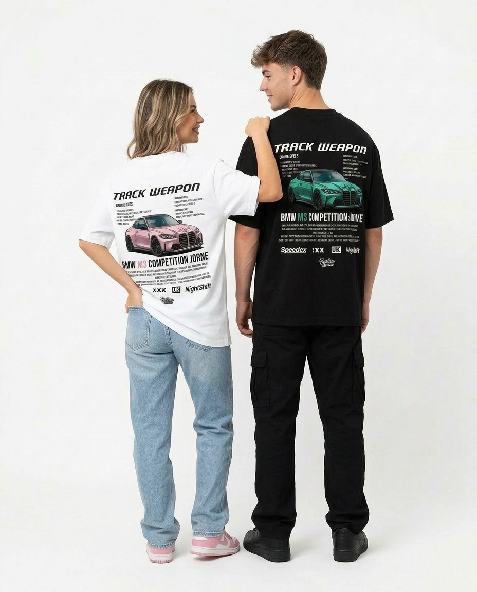 Koszulki matching to idealna opcja dla par, znajomych lub ekip, które chcą mieć spójny motoryzacyjny vibe. Projekty są dopasowane stylistycznie, dzięki czemu tworzą jeden komplet.